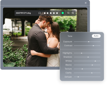 Find your best photos from thousands, edit them in your signature style, and deliver to your clients 10x faster.